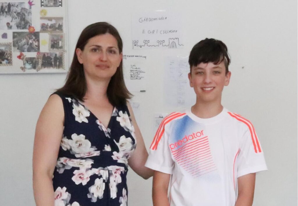 (a képen Máté és osztályfőnöke, Kerti-Kovács Diána)